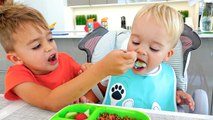 Baby Chris wants to be higher<br />Mom and older brothers help the baby choose toys for his age.