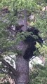 Occurred on May 9, 2021 / Yellowstone National Park, Wyoming, USA<br /><br />Info from Licensor: "I took this video on Mother’s Day 2021 in Yellowstone National park, during a snowstorm. I saw the mother first. She was sleeping on a boulder. When she woke up, she climbed a tree and got her cubs to follow her down to the ground."