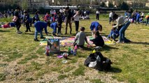 I bimbi dipingono alla maniera di Helen Frankenthaler in riva all'Arno