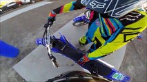 This guy attempted to perform a wheelie for the first time. He rode his dirt bike ahead and tried to do the trick but slipped. This incident caused the guy to fall on his chest with his vehicle on the side.