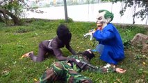 Superheroes war Spiderman Power Rangers Nerf guns SAW w/ Frozen Elsa Iron Man & Hulk in Real Life
