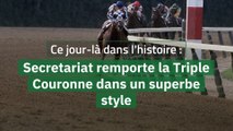 June 9, 1973.<br />Secretariat's victory at the Belmont Stakes meant the horse was the first to win a Triple Crown in a quarter of a century.<br />He had won the Kentucky Derby and the Preakness earlier that year.<br />Ridden by jockey Ron Turcotte, Secretariat broke the record for the Belmont, completing the 1.5 mile race in two minutes and 24 seconds.<br />The horse was extraordinary from a young age.<br />1972 was his first year of racing. <br />Secretariat won seven of his nine races.<br />At the Belmont, Tucotte stated that Secretariat took control of the race, making history on his own.