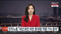 "50인 미만 계도기간 필요"…"근로시간 단축 시급"<br /><br />[앵커]<br /><br />주 52시간 근로제의 50인 미만 사업장 확대 시행을 앞두고 경제 5단체가 계도기간 부여 등 대책 마련을 촉구했습니다.<br /><br />노동계는 근로환경 개선을 위해서라도 근로시간 단축이 시급하다고 맞받았습니다.<br /><br />한지이 기자가 취재했습니다.<br /><br />[기자]<br /><br />이제 한 달도 채 안 남은 50인 미만 사업장의 52시간 노동제 시행.<br /><br />경제 5단체는 아직 주 52시간제를 시행할 준비가 돼 있지 않다며 1년 이상의 계도 기간 부여와 제도 보완을 요구하고 나섰습니다.<br /><br />소규모 사업장의 경우 사업자뿐 아니라 급여 감소 등으로 인한 근로자들의 충격이 불가피하다는 겁니다.<br /><br />중소기업중앙회가 뿌리산업과 조선업종 207개 사를 대상으로 조사한 결과 44%가 주 52시간제 시행을 준비하지 못하고 있고, 27.5%는 시행 이후 준수가 어렵다고 답한 것으로 파악됐습니다.<br /><br /> "임금이나 복지가 상대적으로 열악하다 보니 초과근무를 통해서 임금을 보전하고 있는데 이런 것이 불가능해지면 현장에서의 뿌리 인력, 숙련공들이 사라지게 되고 전체적인 산업 경쟁력에 어려움이 생기지 않을까…"<br /><br />노동계는 3년간의 충분한 유예기간이 있었는데 지금에 와서야 준비 부족을 이유 삼는 건 납득하지 못할 일이라고 주장했습니다.<br /><br />그러면서 노동자들의 실질적인 임금이 감소하지 않도록 수직 계열화된 산업구조의 체질부터 개선되어야 한다고 목소리를 높였습니다.<br /><br /> "기업이 아무런 준비 없이 시행을 앞두고 이제 와서 다시 현장의 어려움을 이야기하면서 유예를 하는 것은 이치에 맞지 않다…책임은 노동자들에게 있는 것이 아니라 정부하고 기업에게 있는 거죠."<br /><br />주 52시간제 시행을 앞두고 노사 간의 간극을 줄일 근로시간 단축 보완책 마련이 필요해 보입니다.<br /><br />연합뉴스TV 한지이입니다. (hanji@yna.co.kr)<br /><br />연합뉴스TV 기사문의 및 제보 : 카톡/라인 jebo23<br /><br />(끝)<br /><br />