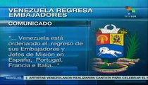 Venezuela ordena regreso de embajadores en Europa