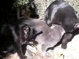 Regaliz y sus gatitos aseandose