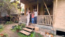Indonesia man building houses made of soil and bamboo