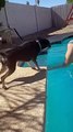 Hilarious viral video of a dog jumping onto a pool float. The dog owner follows and instead falls into the pool.