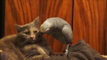 Ce perroquet est bien décidé à embêter ce chat