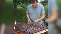 Un homme joue sur un "hackbrett"