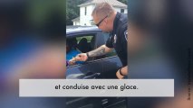 Des policiers offrent des glaces aux automobilistes
