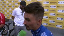 "Gagner la première étape du Tour de France 2021, c'est quelque chose d'énorme" a déclaré Franck Alaphilippe, cousin et entraîneur de Julian, après le succès de ce dernier samedi, avec huit secondes d'avance devant Michael Matthews (BikeExchange) et Primoz Roglic (Jumbo-Visma).
