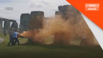 Baling cat warna oren ke atas pesawat sebagai tanda protes