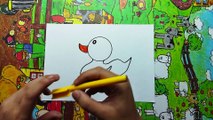 Cara Menggambar Bebek dari Lingkaran dengan Mudah full warna