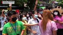 Demonstrators protesting against the military takeover of Myanmar held a quick march before dispersing on Wednesday in Yangon, the country's largest city.