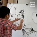 இணையத்தில் வைரலாகும் சிறுவனின் ஆஞ்சநேயர் ஓவியம்! ! Little Kid Creates An Amazing Painting With Thread Strings