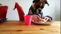 perro Boxer con manos sorprendente