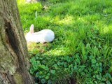 Cute fat bunny climbing tall building so funny rabbit