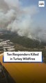 The death toll from wildfires raging on Turkey’s Mediterranean coast rose to six Saturday after two forest workers were killed.