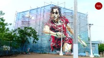 Hyderabad street artists create 40 ft wall art of PV Sindhu