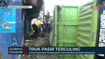 PANDEGLANG, KOMPAS.TV - Sebuah truk bernopol A 8773 KD yang mengangkut pasir terperosok hingga terguling ke area persawahan di Kecamatan Majasari, Kabupaten Pandeglang, Banten. <br /> <br />Kejadian tersebut terjadi akibat jalan yang kecil dan tidak adanya tebing penahan tanah. <br /> <br />Andi, warga sekitar mengatakan kejadian berlangsung saat truk bermuatan pasir tersebut melintas di jalan yang hanya memiliki lebar tiga meter itu amblas karena tidak adanya tembok penahanan tanah. <br /> <br />Dalam kejadian tersebut sopir dan kondektur selamat dan hanya mengalami luka ringan di bagian tangan. <br /> <br />Namun hingga saat ini proses evakuasi masih terus dilakukan dengan menggunakan alat berat. <br /> <br /> <br />