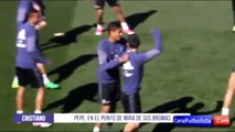 Cristiano Ronaldo charrie Pepe à l'entrainement