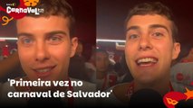 Ator da Globo participa da pipoca no carnaval de Salvador pela primeira vez: 'Povo incrível'