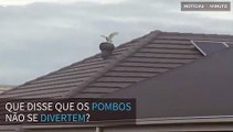 Pombo descobre seu brinquedo favorito: um exaustor