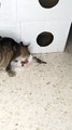 Sparrow wanted to fly away from us. But he changed his mind and returned to his friend the cat