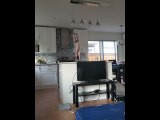 Occurred on August 18, 2021 / Halifax, Nova Scotia, Canada<br /><br />: "I am currently in the midst of moving and my kitten, Lennon, normally climbs across the glass shelf of my shelving unit to get to the window sill. However, since I’m packing and moving, I had removed the shelf. Lennon didn’t know that."