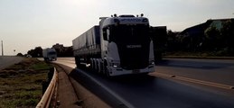 SCANIA BRANCO CARRETA RANDON BAÚ 6 EIXOS