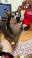 This dog, Ruby, was sitting next to their animal brother Glen, the cat. Suddenly she saw her brother, Glen, steal a piece of chicken nugget from the table. Ruby was in utter disbelief and looked around the room in shock.