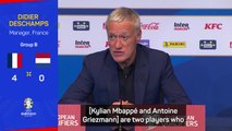 Didier Deschamps, présent en conférence avant d'affronter la Bosnie mercredi, a évoqué les deux "dossiers" de cette fin de mercato : le transfert, plutôt mal engagé, de Kylian Mbappé au Real Madrid et la possibilité d'un retour d'Antoine Griezmann à l'Atlético de Madrid.