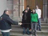 Chorale d'animaux devant une église