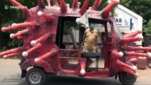 Indian artist designs COVID-19-themed rickshaw to raise awareness about the pandemic