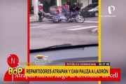 En la cámara de seguridad se ve como la víctima intenta defenderse, pero es reducido a golpes por cinco sujetos.