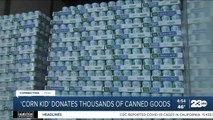 Corn kid donates canned goods