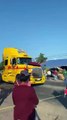 Tráiler casi arrolla a manifestantes tras tumbar una cuerda que habían puesto en Veracruz
