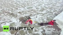 12 personas caen a un lago congelado al intentar ayudar a un hombre que se ahogaba