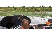 Este elefante con muy mala leche arremete contra un bote de unos turistas durante un safari