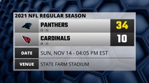 A look at the game recap for Panthers @ Cardinals on SUN, NOV 14 - 04:05 PM EST. You can count on us for everything you need to know about the 2021 NFL season. Your source for scores, previews, recaps, box scores, and more from every National Football League game. The schedule is set, and we're ready for some footlball.