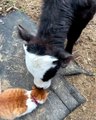 This cat, Brownie, is a puppy and a dog lover. He was corned was multiple husky puppies to the side of the wall. The dogs jumped at Brownie and gave him adorable nuzzles excitedly.