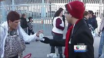 Dan la bienvenida con una botella de agua a peatones del puente internacional