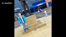 Adorable reaction from youngster as she receives birthday present from bin men
