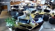 Terrifying moment driver ploughs car into internet cafe