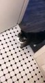 Ce chat vient de découvrir la particularité de la chasse d’eau. Il ne semble pas s'en remettre