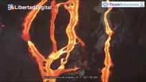 Un dron filma la nueva colada del volcán de La Palma mientras engulle casas y terrenos