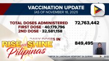 Bilang ng nabakunahan vs. COVID-19 sa bansa, higit 72-M na