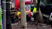 Accidente entre dos coches en la zona de Diagonal Mar deja dos heridos leves y uno de los coches empotrado en una palmera