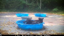 Occurred on February 12, 2021 / Big Cypress National Preserve, Florida, USA<br /><br />Info from Licensor: "A Florida black bear and two large cubs show up at the scratching post in the Big Cypress National Preserve and they appear to be lighter in color than the usual black but it's hard to tell at night if they are blonde, tan or cinnamon phase. Or maybe it's a molt phase in February? Curiously, all black bears in North America are not black. While they are all the same species (Ursus Americanus), different color variations, called phases, include brown, cinnamon, tan, blonde and white, in addition to black. It's rare but the Big Cypress Swamp has blonde or tan bears. Bears have been using this scratching post for generations."