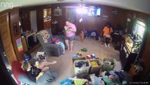 Dog Jumps on Owner Resting on Recliner in Excitement and Ends up Flipping Her Over